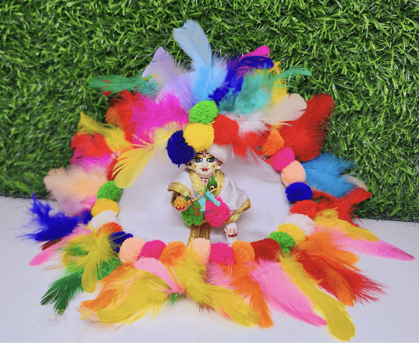 laddu gopal plain base feather dress with pagdi